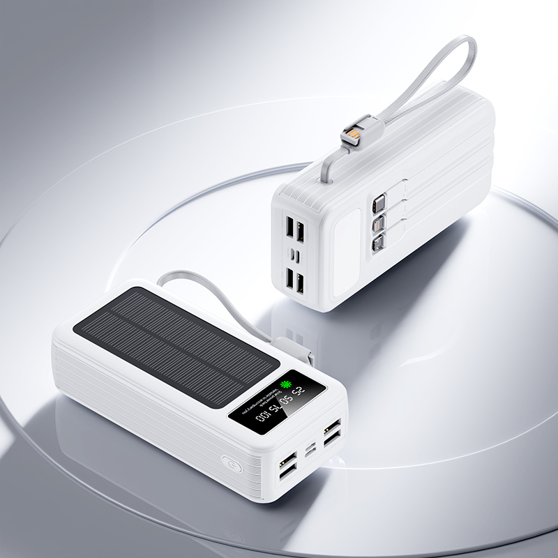 Home Power bank Solar powered portable power bank with built-in wires